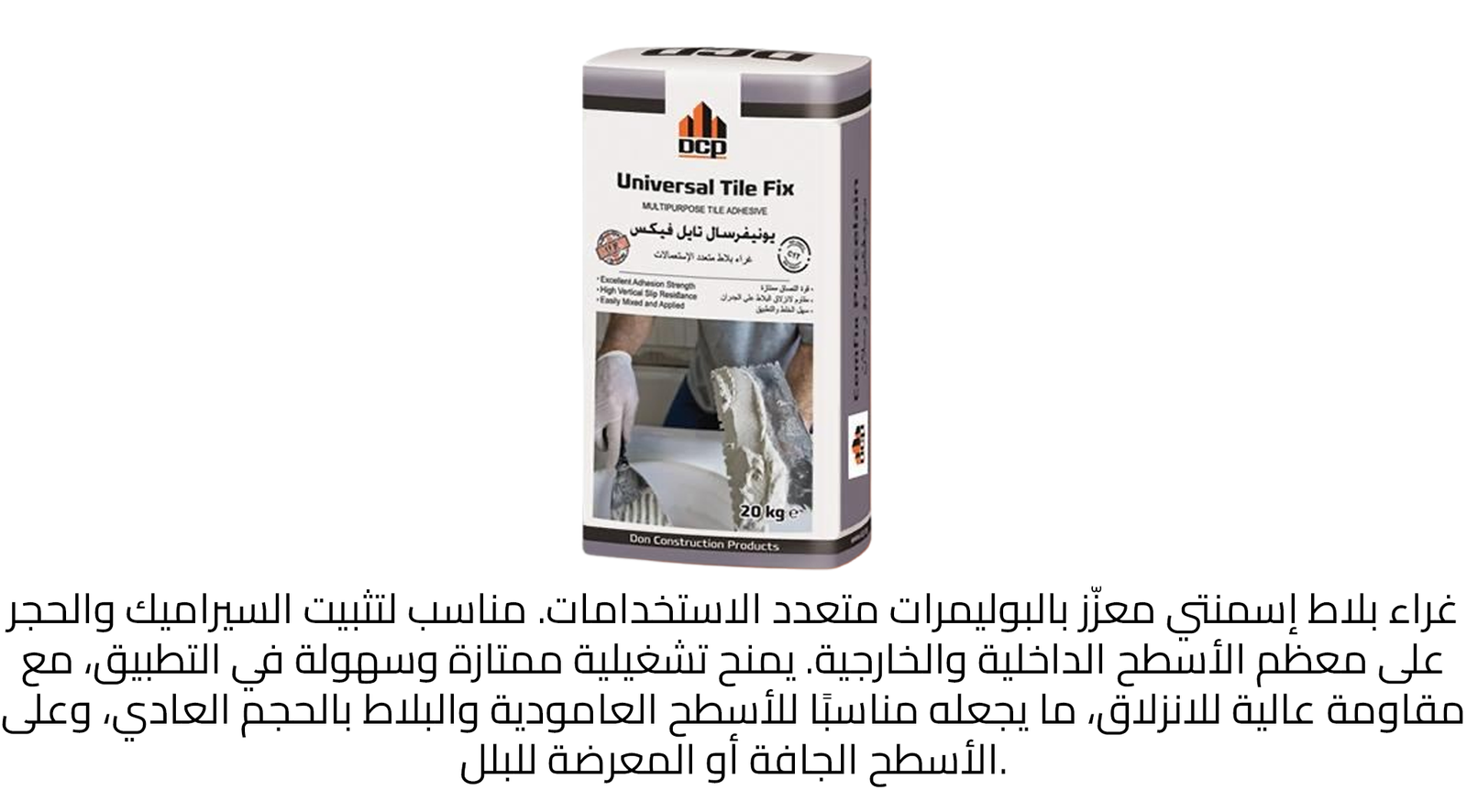 يتوفر لدينا غراء (ELTA)، عالي الجودة بتقنية ألمانية يتمتع بقوة لصق عالية مقاومة للماء والرطوبة، ويستخدم للحوائط والأرضيات والواجهات والأحواش. ضمانة لمدة 25 سنة. كما يتوفر لدينا جميع أنواع الغراء للسيراميك والبورسلين.